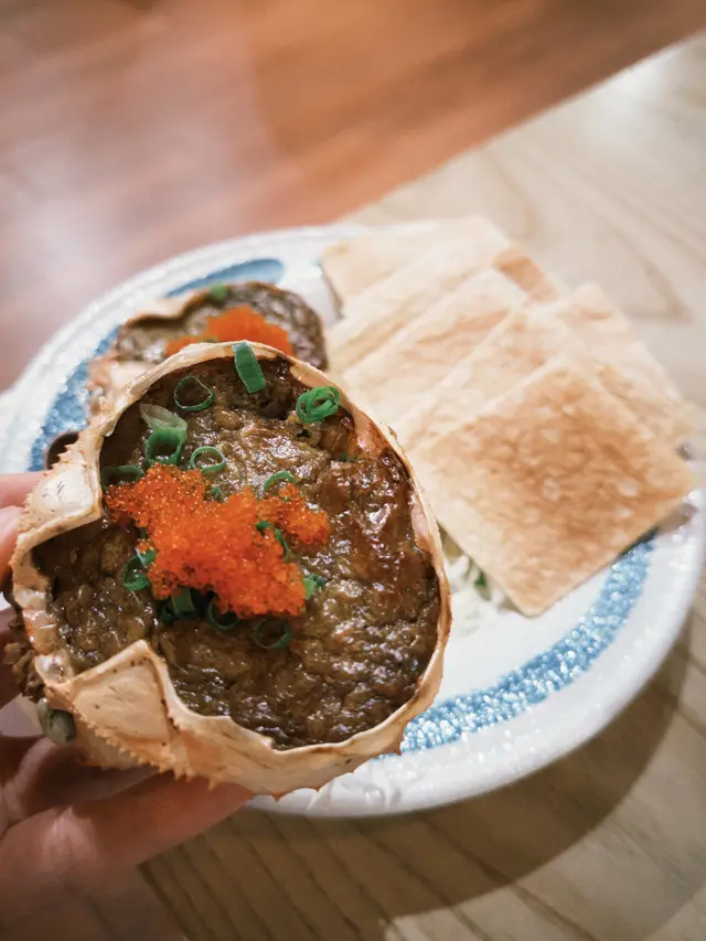 蟹味噌甲羅燒配鱈魚乾