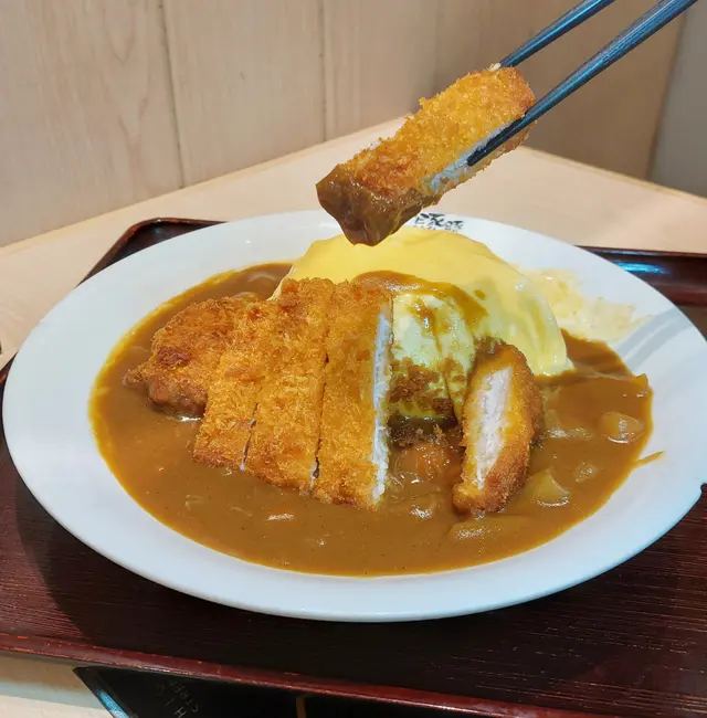 吉列豬扒炸得很香脆,肉質鬆軟彈牙。雞蛋滑溜富蛋香,米飯圓渾煙韌、入口粒粒分明,咖喱味濃又不失甜味,用嚟拌飯一流!