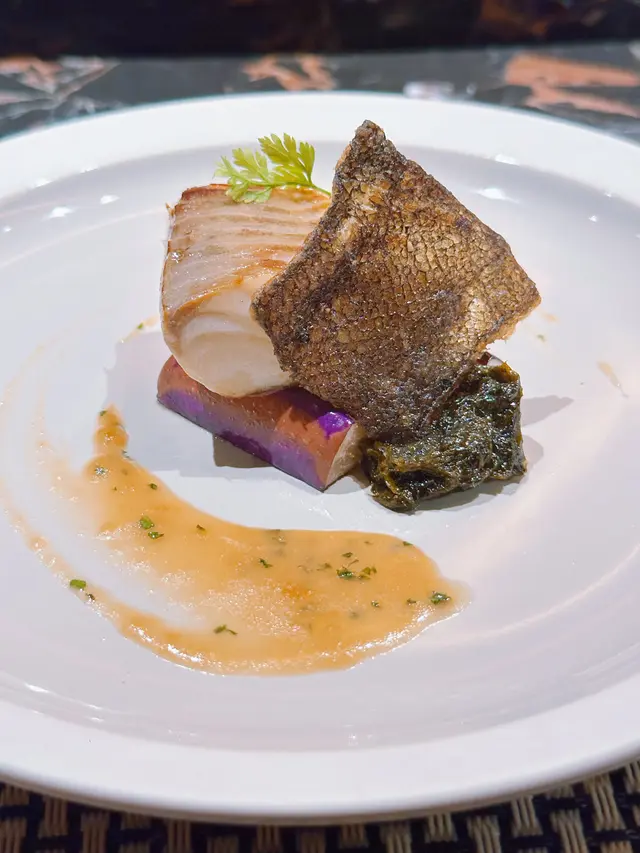 銀鱈魚雪白細嫩🐟脂香係口入面慢慢散開,鮮嫩而不油膩,魚皮煎到金黃香脆,搭配茄子🍆及特製日本紫菜汁,令味道更鮮更昇華。