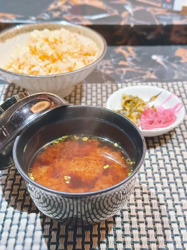 赤味噌散發出醇厚香氣,以蔥花點綴🌱飲落暖胃又暖心