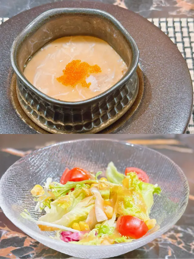 茶碗蒸直接置於鐵板上蒸煮💛口感幼滑柔嫩,表面覆蓋著濃稠的蟹肉汁🦀味道鮮甜,配上脆卜卜的飛魚籽作點綴,帶來鹹香的味道