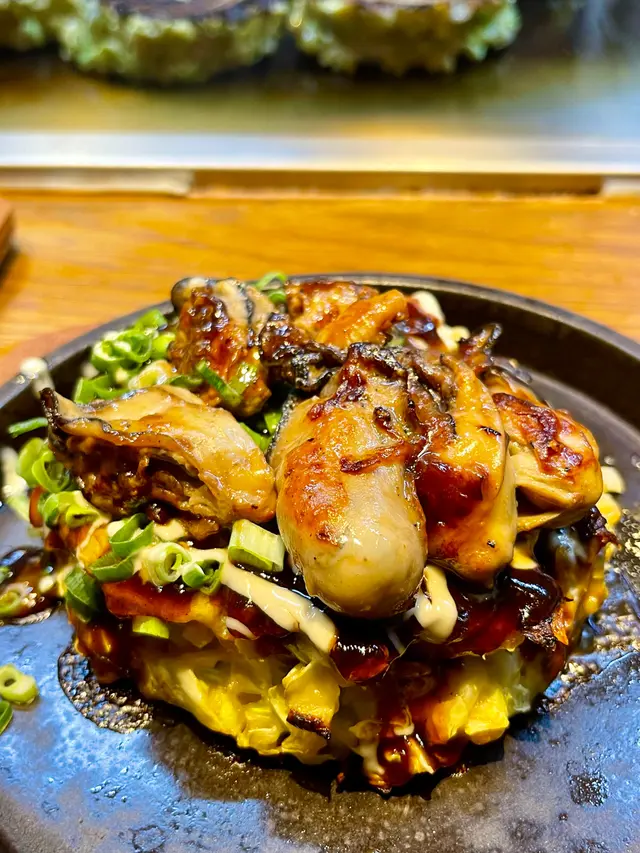 蠔大大粒好新鮮,則邊有豚肉包住~大板燒仲加咗唔少菜,燒到外脆內軟,好惹味。