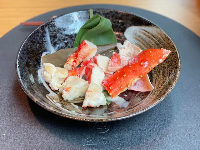 師傅將昆布焗熟鱈場蟹,香煎後脫殼上碟。蟹肉口感結實,入口啖啖肉,味道偏淡。