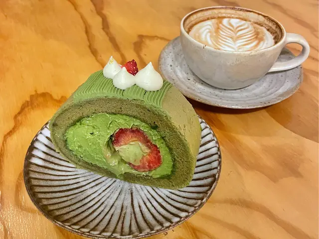 咖啡出乎意料有個咁靚嘅拉花🌿 一啖蛋糕一啖咖啡,瞬間為個甜品生色不少!