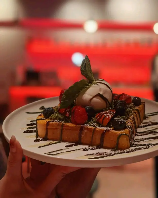 呢個吐司外脆內軟,淋上甜蜜嘅糖漿,再撒上滿滿嘅開心果脆絲,口感豐富,甜而不膩! 絕對是完美嘅ending❤️