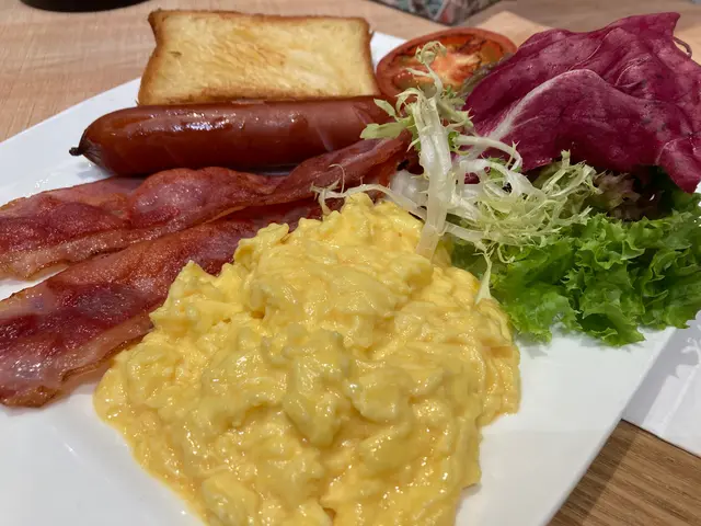 炒蛋幾好,Bacon 太乾,芝士腸唔熱,多士唔熱+太淋,蔬菜正常。