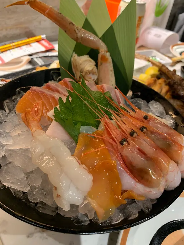 刺身新鮮, 蝦同貝類鮮甜肉質好, 三文魚唔會太薄, 蟹腳非常足料, 仲要枱面已備鉸剪, 非常貼心~