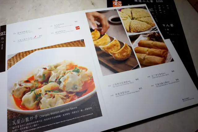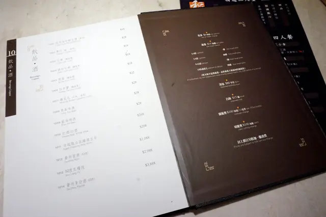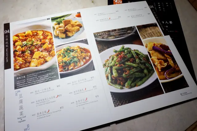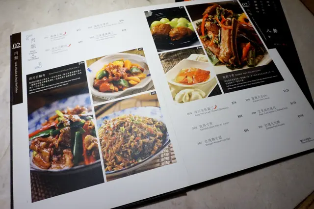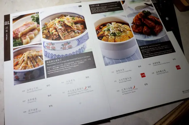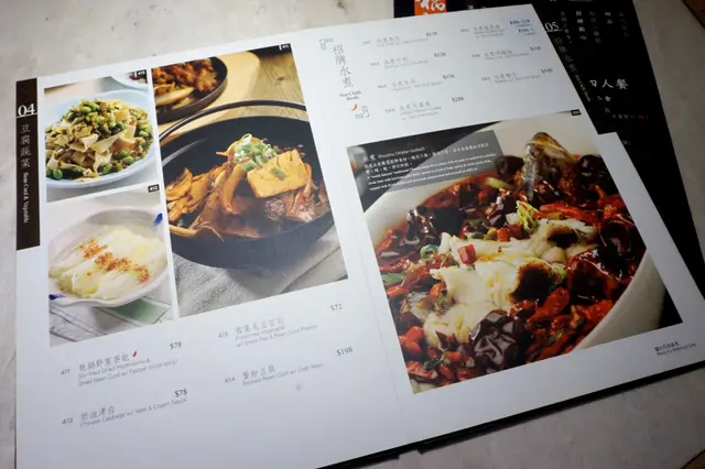 翻一轉就知菜式選擇甚多,種類由涼菜、肉類、海鮮、豆腐蔬菜、招牌水煮、湯羹、點心、麵飯、甜品,以及飲品、酒類。