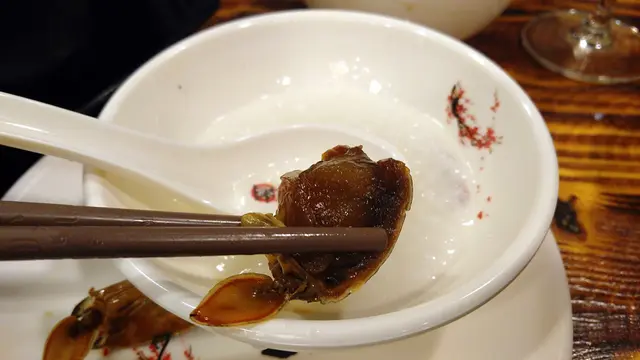 醬醃過的龍蝦肉質變得結實彈牙, 蝦膏味道則更為濃厚, 味道用"鹹鮮香"三字充份表現. 配上白粥紓緩非常適合.