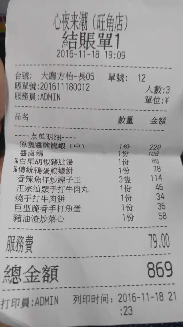 點菜的時候其實沒有仔細計算過總銀碼, 點了醃龍蝦本來預算應該過千, 沒想到$900也不用, 人均消費大約$290, 價格上滿意.