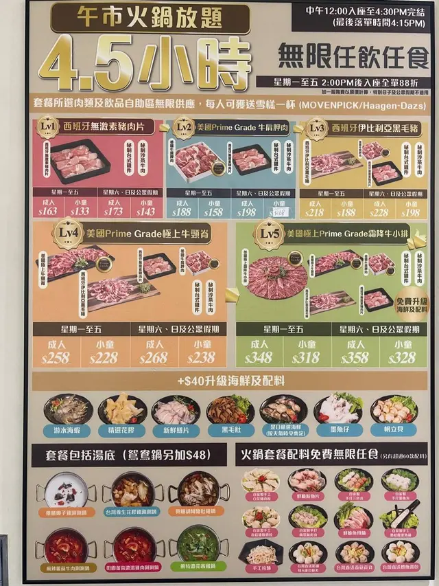呢度有超過60款嘅火鍋配料任食,配料同其他出面嘅火鍋放題唔同,係需要落單,而唔係自助吧度夾,感覺比較衛生 。飲品同醬料就係喺自助吧自取嘅,最尾仲有一人一杯Haägen Dazs或者Mövenpick雪糕,為呢餐畫上完美嘅句號😋