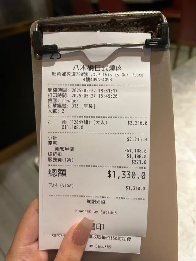 最後埋單$1330兩個人,食飽飽走人🤰🏼超滿足