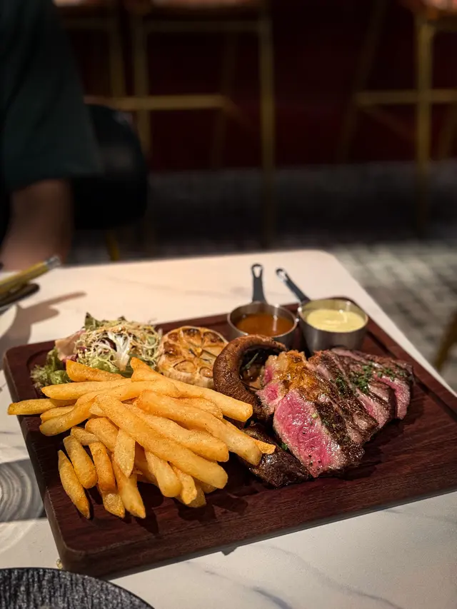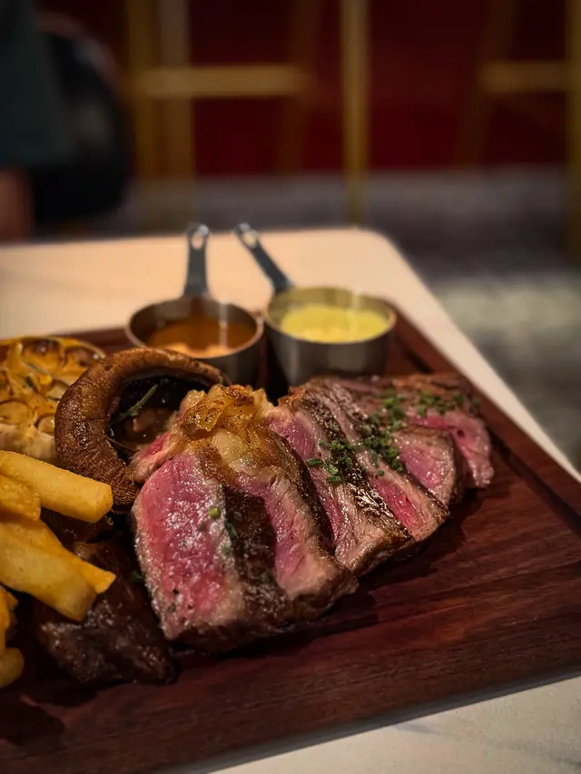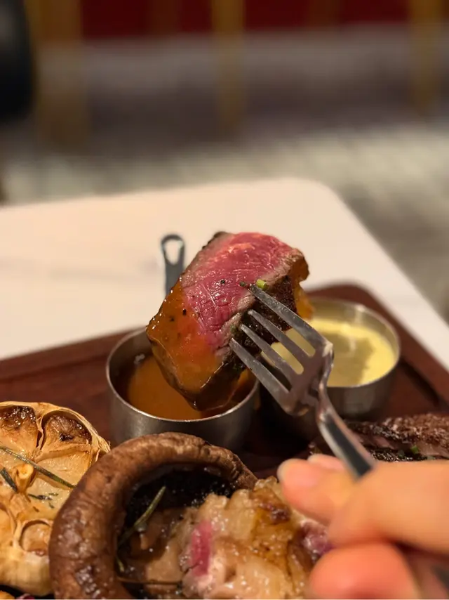 🥩 叫咗medium ,切開粉嫩嫩,店員都建議半成或以下,因為肉質偏實啲,但配埋個醬汁真係無得彈~