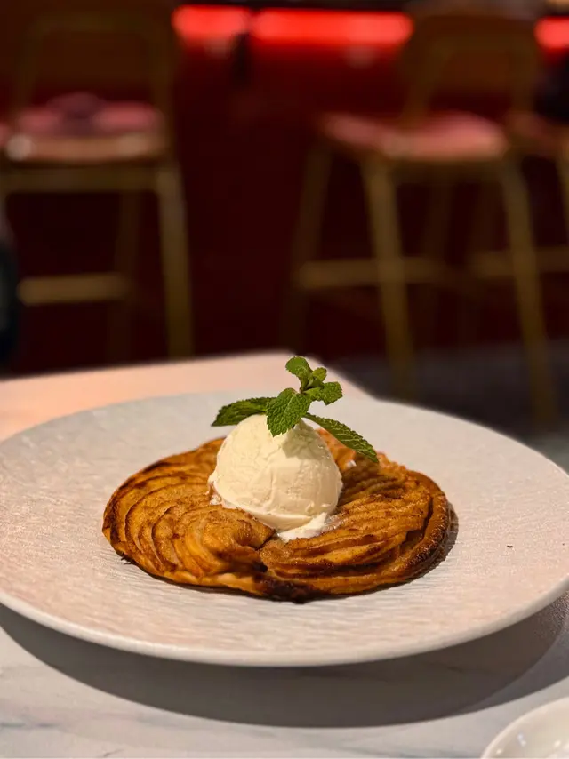 甜品時間!🍎 焦糖蘋果撻熱辣辣,撻底酥脆,加埋雲呢拿雪糕,冰火口感正爆~