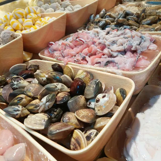 以自助形式, 任飲任食🤩 款式選擇多, 海鮮種類亦有好多選擇. 自己可以出去夾晒喜歡既配料. 正👍 而且食材質素不錯,,用料配料新鮮.