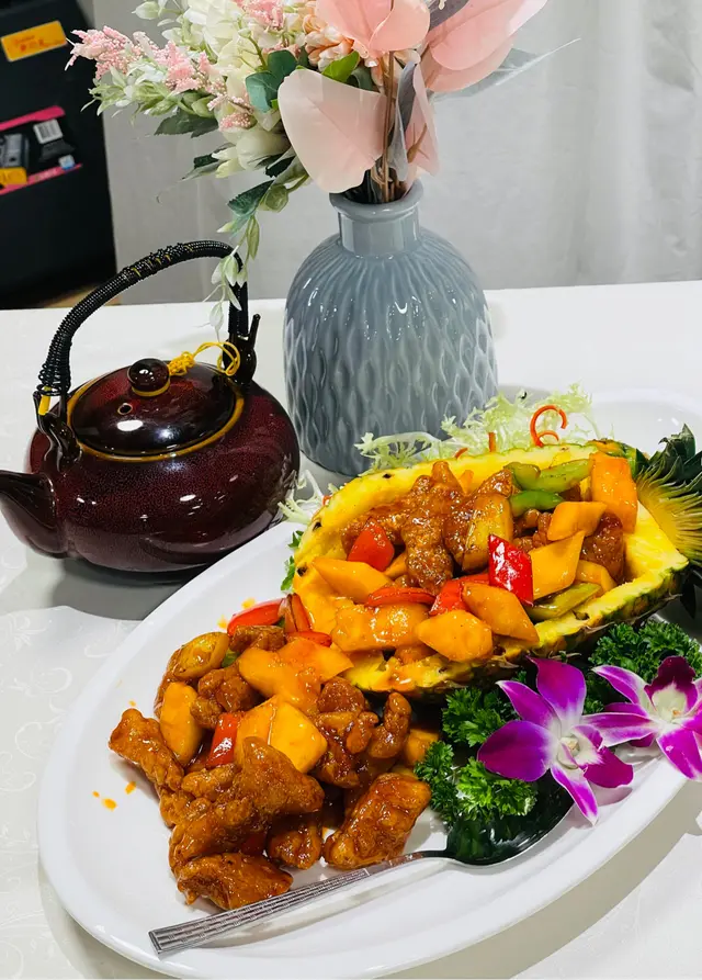 必食推介,一上枱已經被份量嚇親,從未見過咕嚕咁大碟,用新鮮菠蘿殼放上大量咕嚕肉及菠蘿,賣相已經一流,食一口咕嚕肉,外皮超級香脆,豬肉用上豬梅頭肉,肉質非常有彈性帶爽脆,醬汁酸甜度啱啱好,超級好食,菠蘿都係用上新鮮菠蘿,店員話師傅是客人點菜單用新鮮菠蘿即切,就算係配菜青紅椒都一樣咁好食,真心好出色的一個咕嚕肉