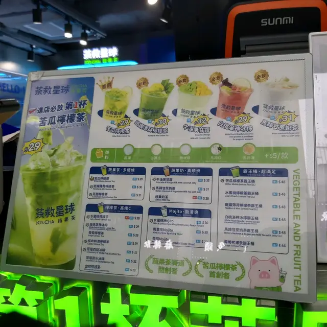 旺角新開打卡蔬果果汁店😎 MoodzFoodzLevel 42023-08-1782 views Follow 苦瓜檸檬茶$29苦瓜檸檬茶 $29每啖都有苦瓜味,同檸檬幾夾,中意苦瓜既應該好中意🤭牛油果甘露$32牛油果甘露 $32ok,但椰汁味蓋過牛油果店入面有好多免費豬仔拎🐷🐷 每杯仲有麻雀仔送😂 吾知儲齊哂要飲幾多杯呢?🤣🤣#旺角美食#旺角#foodie#hkfoodie#旺角必飲#甜品#旺角甜品#必食#香港必食#香港美食#香港网红打卡#香港美食探店#奶茶#苦瓜檸檬茶#甜品推薦#茶救星球#銅鑼灣美食#銅鑼灣#moodzfoodie#moodzfoodzThe above review is the personal opinion of a user which does not represent OpenRice's point of view.1Share旺角新開打卡蔬果果汁店😎 茶救星球蔬果茶 https://s.openrice.com/QrKT0WdPB00Report Post Ratings3Taste--Decor3Service3Hygiene3ValueDate of Visit2023-08-13Waiting Time15 Minutes (Dine In)Spending Per Head$30 (Tea)
