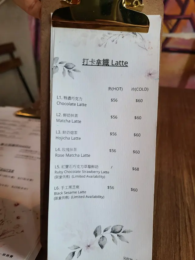 手工黑芝麻係限定。色水呈黑白色,鮮奶加上黑芝麻醬,記得要撈好先好飲。味道唔甜。