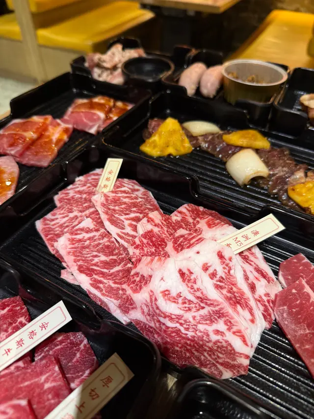 有好多唔同嘅醬料,例如蒜味鹽醬、極上醬油、沙茶醬等,特別推介薑味可樂醬同五味醬,搭配燒肉時,味道真係一流。