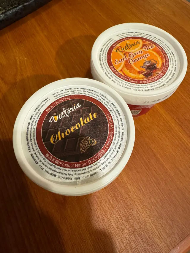 最後餐廳仲有2杯雪糕送,揀左伯爵茶橙味同朱古力味,雪糕係香港製造,幾好食。