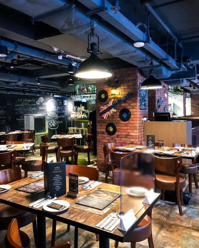 呢間餐廳以搖滾音樂做主題,牆上有唔少黑膠唱片、電吉他作裝飾!環境闊落,的確幾適合聚會😙