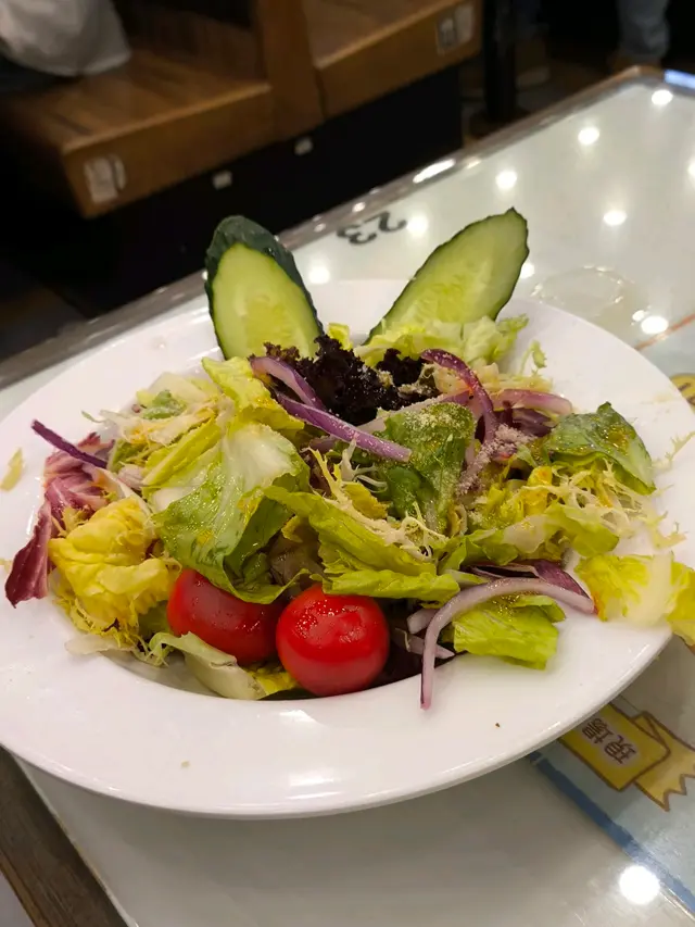 沙律內有青瓜,紫洋蔥,車厘茄,田園雜菜,口感清爽,酸酸甜甜好醒胃。
