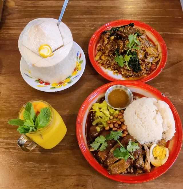 首推泰式牛肉炒河粉:份量十足,河粉煙韌不黏,牛肉炒得香嫩入味,加上惹味配菜,令人食指大動;泰國街邊豬手飯,豬手燜得軟嫩、膠質豐富,與泰式咸酸菜相得益彰,加上秘製醬汁,街頭風味十足。