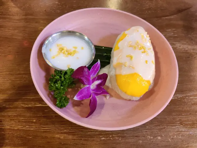 飯後甜品不可錯過芒果糯米飯,香甜芒果配上熱辣辣的糯米飯,再淋上椰漿和脆米,既有泰國街頭甜品的親切感,又不失精緻。