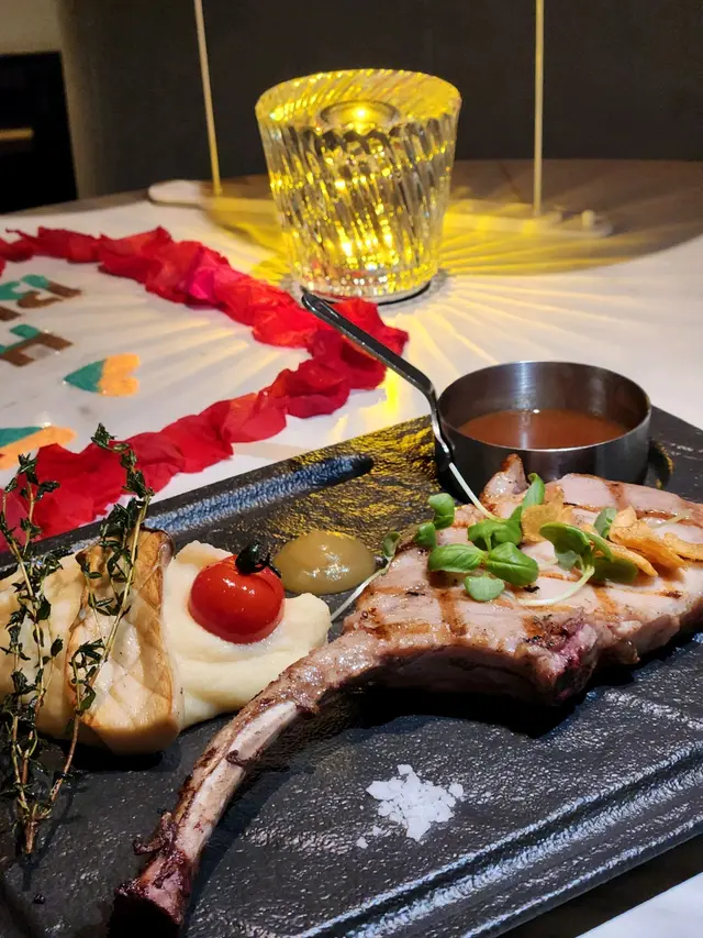 烤戰斧豬扒肉質軟腍,配焦糖蘋果比起燒烤醬更夾更解膩