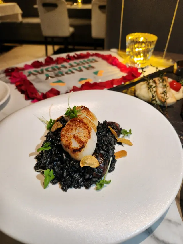 香煎帶子墨汁意大利飯