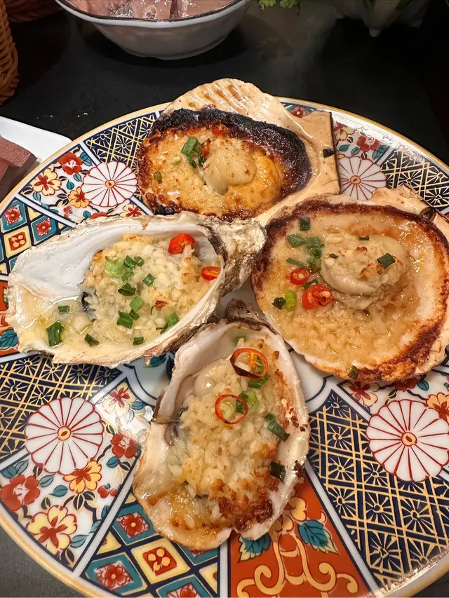 我哋試咗三款串燒:鹽烤蝦大大隻鹹香鮮甜,猛火肥仔蠔燒到啱啱好爆汁,蒜香扇貝蒜味濃郁又彈牙。一路食住串燒,一路飲返杯冰凍啤酒,真係未打邊爐已經氣氛滿分!