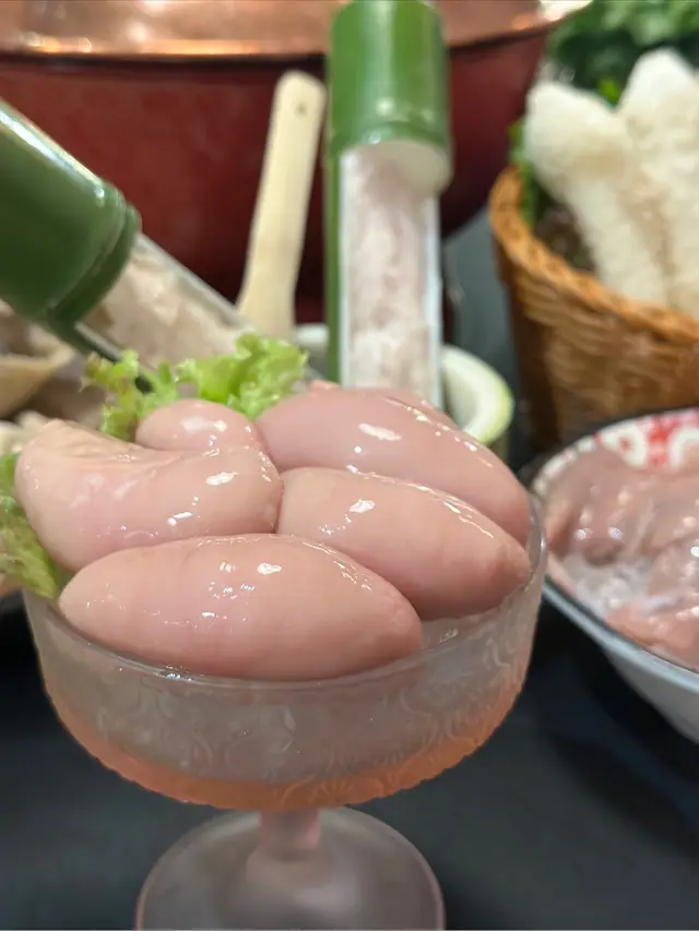 特別要讚新品廚師推薦-雞雞子,入口creamy又夠鮮;鮮豬豬膶片切得薄身,輕輕一灼就食得,嫩滑無比;鴨血滑溜溜又入味,正!食返啲蔬菜平衡下,皇帝菜吸晒湯汁精華,雨衣鮮竹笙索滿湯汁超好味!