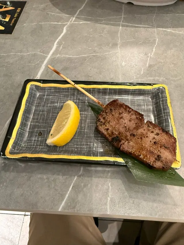 鹽燒牛舌厚切多汁,鐵板鵝肝外脆內軟,搭配蘋果片解膩。