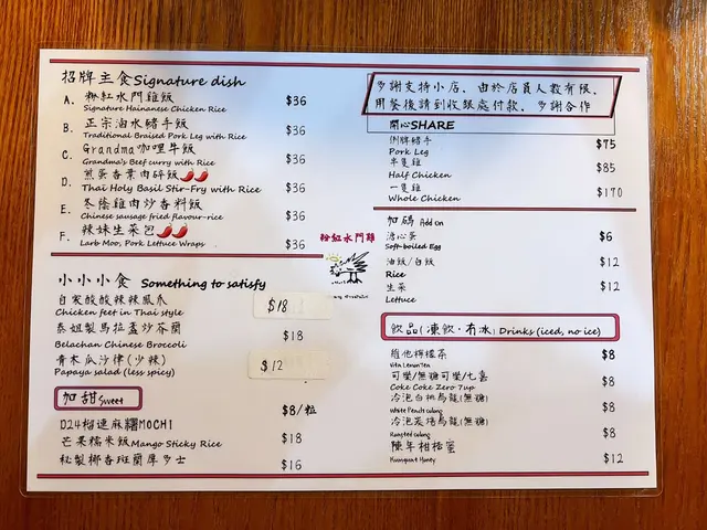 旺角超抵平民美食 cyrus1818Level 42021-12-1477 views Follow 完全沒有想過旺角鬧市街頭也有如此便宜的平民美食。粉紅水門雞飯粉紅水門雞飯 - $36 想不到海南雞的份量也頗多,肉也算嫩滑,皮略帶油脂也可以接受;雞油飯香口不油。冬蔭雞肉炒香料飯冬蔭雞肉炒香料飯 - $36 炒飯炒得乾身不油膩,除了一片片的雞肉外,有微辣的冬蔭功,充滿泰式香料味,有一粒粒腰果好有口感。泰姐製馬拉盞炒芥蘭泰姐製馬拉盞炒芥蘭 - $18 香辣的馬拉盞正好掩蓋芥蘭的苦澀,好爽脆。芒果糯米飯芒果糯米飯 - $18 芒果片鮮甜多汁,軟糯的糯米飯充滿椰香。冷泡白桃烏龍 & 冷泡炭培烏龍冷泡白桃烏龍 - $8 清爽的烏龍茶香,有白桃的香甜。 冷泡炭培烏龍 - $8 濃郁一點,有炭燻香。The above review is the personal opinion of a user which does not represent OpenRice's point of view.LikeShare旺角超抵平民美食 粉紅水門雞 (威達商業大廈) https://s.openrice.com/QrKT0Dob100Report Post Ratings4Taste4Decor4Service4Hygiene5ValueDate of Visit2021-12-13Dining MethodDine InType of MealDinner