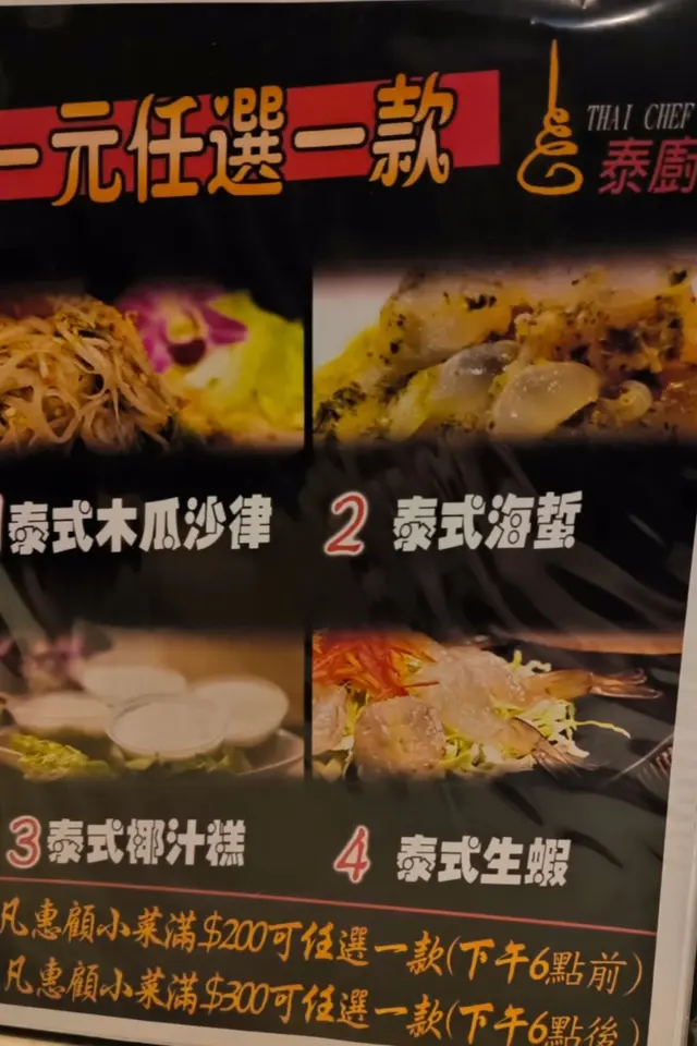 款式4選1:木瓜沙律/泰式生蝦/泰式海蜇🪼/泰式椰汁糕。好抵食,份量都唔少:一客泰式海蜇好多塊/4件泰式椰汁糕。海蜇比外面食開嘅係大塊,而且質感煙煙韌韌好爽口。椰汁糕唔會太甜,好有泰式風味。