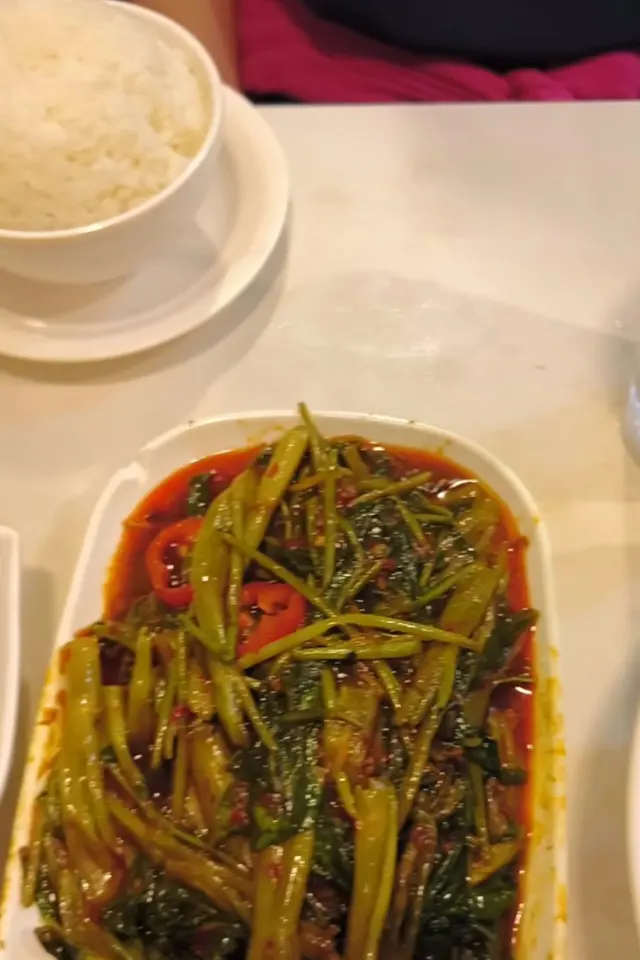 馬拉盞炒通菜:少少辣挺香口,通菜煮至質感軟身。