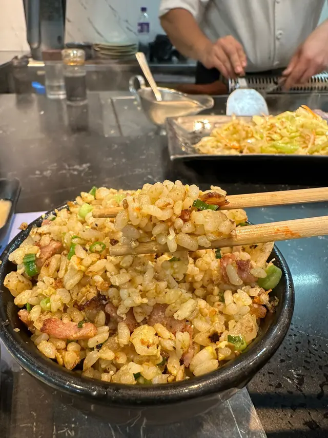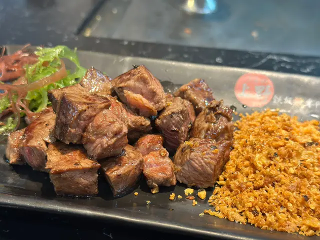 首先講吓美國牛柳粒, 師傅即場喺鐵板燒到滋滋聲,未食已經流口水!牛柳粒切到一口size,外面煎到微脆,入面保持到粉嫩色澤,咬落去肉汁爆發,仲有淡淡炭香。最正係佢哋個秘製燒汁,帶少少甜味,同牛肉嘅油脂香超夾,令人食到停唔到口!