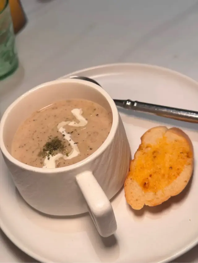 慢煮雞胸沙律意外地好食,雞肉嫩滑冇「鞋」口,胡麻醬同沙律菜撈勻幾開胃。黑松露蘑菇湯菇味濃郁,飲落暖笠笠,不過松露味可以再重手少少。北海道帶子risotto飯粒軟硬適中,帶子煎得微微焦香,海鹽醬吊味幾夾👍🏻