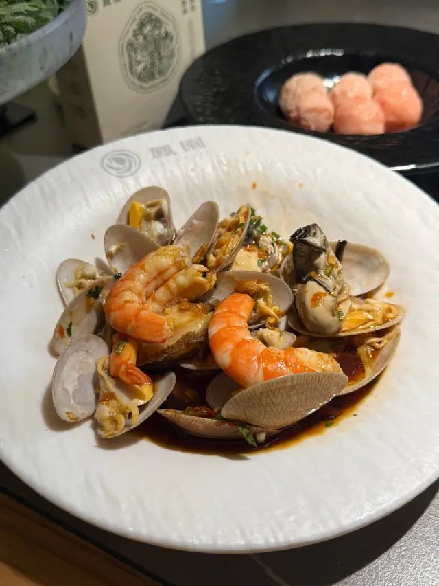 有鮮蝦、蜆、魷魚同鮑魚,撈上特製微辣醬汁完美融合,食到停唔到口!