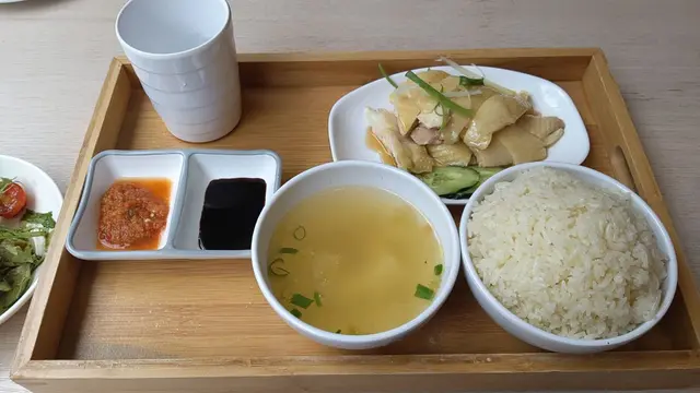 海南雞飯: 油飯普通 (just like有油既飯) 飯粒偏冧身 雞肉量比想像中多 上排係雞脾肉 下排係雞胸(有肉食,唔係D墊底肉) 味道中規中矩 本身肉味偏淡 上碟已配有少量醬油 配埋個辣醬剛剛好 湯有dd味精feel