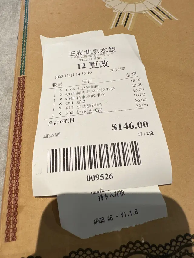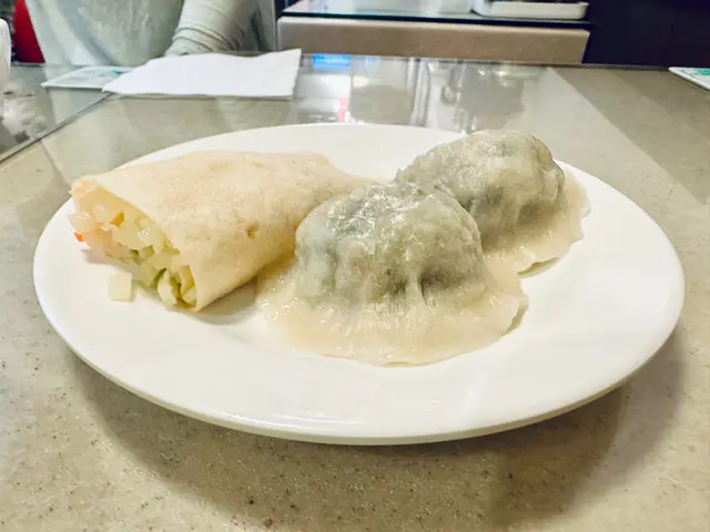 我和朋友,點了兩款餃子🥟(鮮肉韭菜水餃,花素水餃),可以點半份,好靈活👍🏻、豆漿、土豆絲卷餅及松花蛋豆腐。