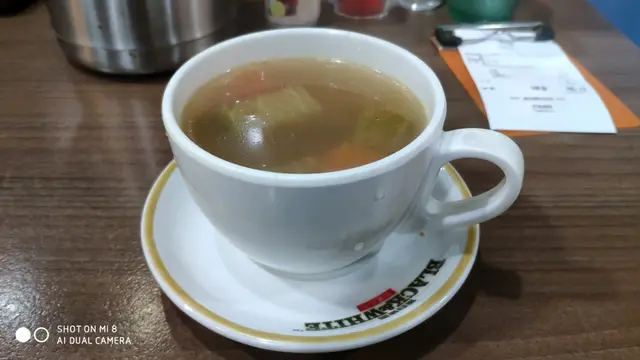 侍應親節落單,點了一個“星洲炒米”,餐湯竟然可以選擇西湯或中湯,太體貼喇❗還有餐飲,點了一杯奶茶❗太“確幸”啦❗