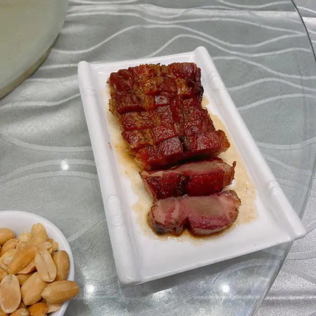 半肥瘦部位,蜜糖 glaze 夠亮身,肉質鬆化但邊位略嫌燶咗少少,甜度啱啱好,伴碟嘅脆片吸睛度爆燈!