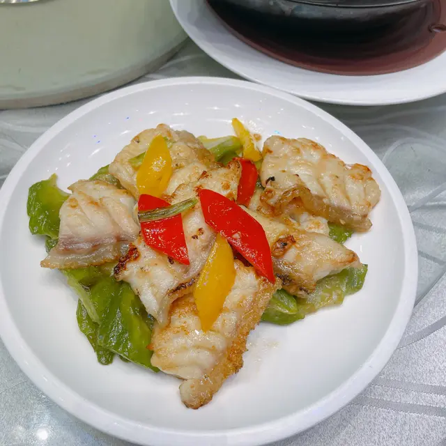 斑球煎得金黃,肉質彈牙無骨,配杜阮涼瓜片清甜爽脆,鑊氣十足又夠健康,怕苦味嘅人都食到停唔到口!