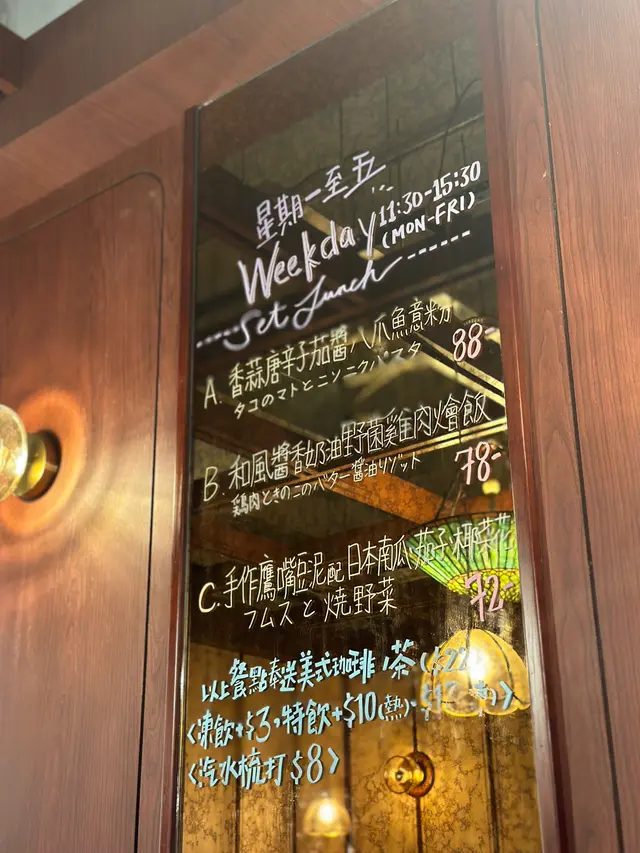 餐廳好有昭和氣息 一入屋就係紅木式傢俬同牆身加上玻璃燈 有好濃厚嘅舊式日本Cafe味道