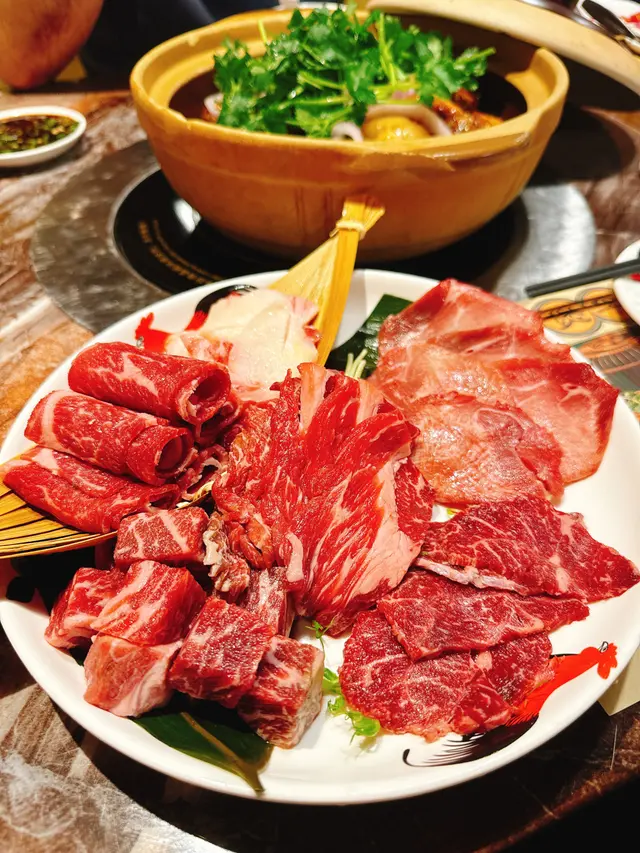 龍鳳呈祥牛肉拼盤(細):雖然係細份,但牛肉幾種切法各有特色,有啲厚切啖啖肉汁,有啲薄切油脂分佈靚,夾埋火鍋湯底嚟涮,好快就熟,唔會柴,肉味保留得好。