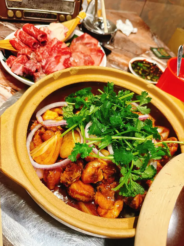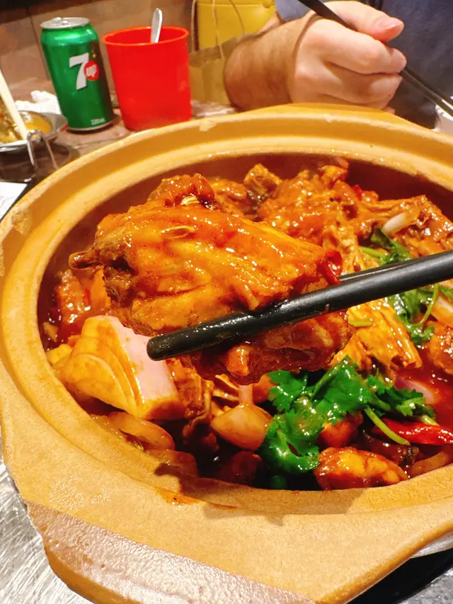 BB辣雞煲:賣相夠晒吸引,滿滿配料。啖啖雞肉嫩滑,入口時感覺係甜甜地,辣味係慢慢滲出嚟,唔會搶晒風頭,反而啱啱好咁吊味,適合唔太食得辣又想試辣煲嘅人。