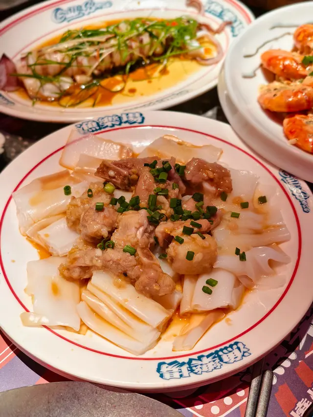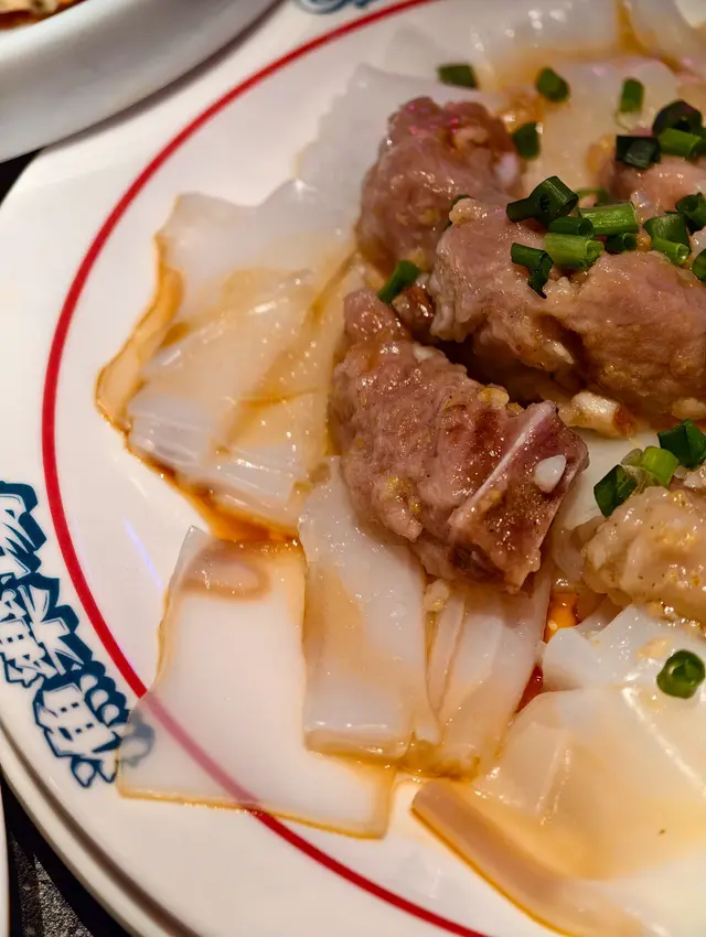 排骨吃起來蒜香味很足,肉質嫩滑又有彈性的。而底下的陳村粉吸飽了醬汁,吃起來有肉香,口感滑嫩,有米香。