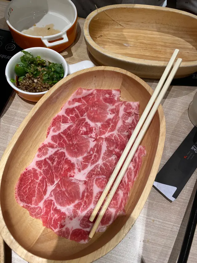 order左一個鰹魚昆布湯。一個蕃茄壽喜燒湯底。昆布好淡 無乜味。蕃茄壽喜燒果個係一pat未溶曬既茄汁⋯⋯好甜,甜到有d假,又食唔到壽喜燒醬油味。佢入面仲有羽衣甘藍,超級苦又硬,全部要夾走。