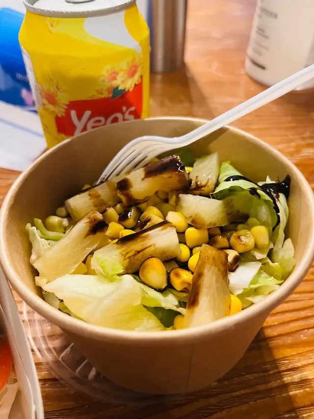 野飲係街外買既紙包飲品,冇咩好評價。沙律份量算多,裝左滿滿既一碗,配醋,食落感覺健康D,除左菜之外,配料只有栗米同少量既波羅,甜甜酸酸都幾開胃。